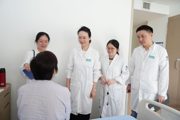 蒙燕(右三)携带团队与患者交流。陈琳摄