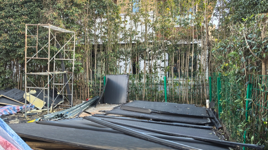 记者此前实地探访时发现,该小区51号旁有业主不仅搭建违法建筑,还肆意破坏绿化,导致原本葱郁的绿地变得斑驳不堪,违建更是遮天蔽日,严重影响了小区的整体环境和居民的正常生活。更令人气愤的是,该业主还与物业、城管部门玩起了“躲猫猫”,试图逃避监管。