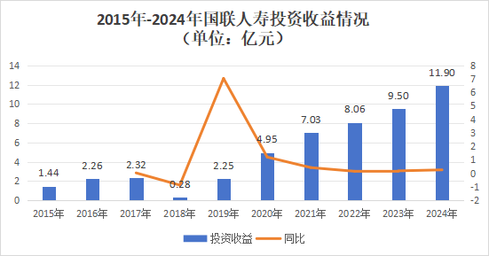 从投资端来看,该公司2018年投资收益出现较大幅度下落,不外并未亏蚀,为0.28亿元投资收益。而后该公司投资收益捏续飞腾,至2024年已结巴十亿平台,达到11.9亿元。