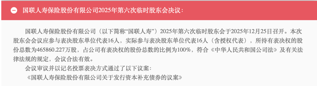 不外,客岁岁首国联东谈主寿东谈主寿增资30亿,该公司年末的2025年第六次临时鼓舞会议上,该公司刊行成本补充债的议案获全票通过。可见,当地对支捏国联东谈主寿发展的决心。