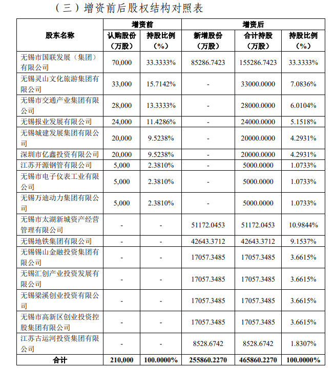 从开动鼓舞起先,以无锡市国联发展(集团)、无锡灵山文化旅游集团、无锡市交通产业集团、无锡报业发展、无锡城市发展集团、无锡播送电视发展为代表的无锡市国资占据十足大头,包揽了其中82.5%的股权份额,江苏寰宇龙线材、江苏开源钢管、江苏寰宇龙集团、无锡市电子仪容工业以民营布景入列鼓舞名单。