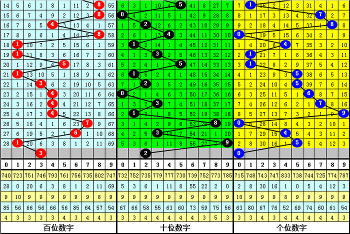 第二位3-6之间的中号开出13个,现在遗漏1期,其中号码6出现0次,现在遗漏55期;号码4出现5次,现在遗漏11期;号码5出现3次,现在遗漏8期;号码3出现5次,现在遗漏1期。