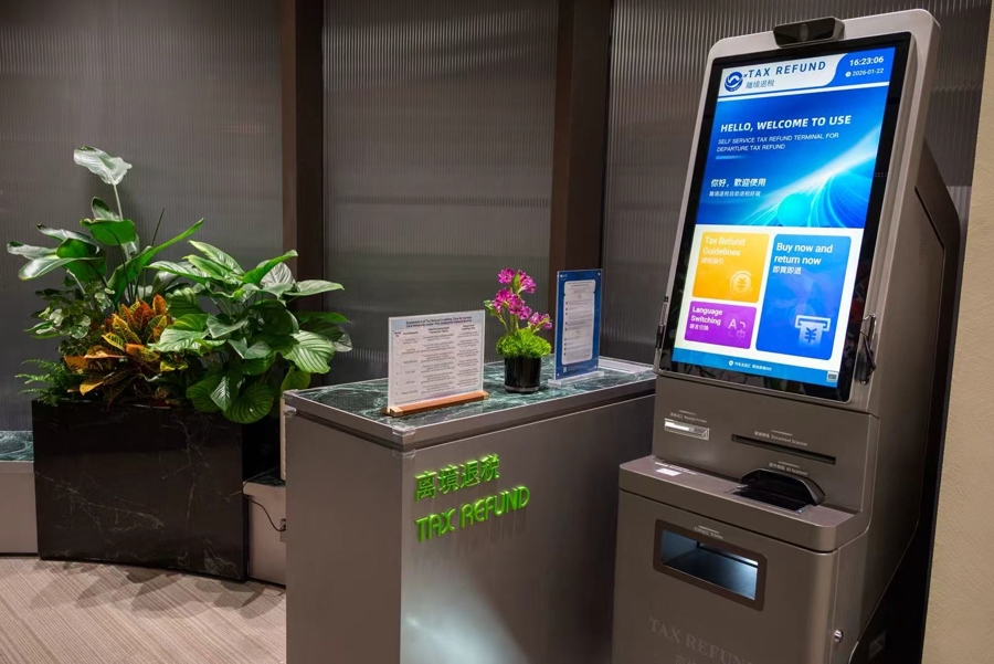 在商场一楼的礼宾服务台,一台离境退税自助设备让海外消费者获得实惠。该负责人介绍:“自2025年8月起,兴业太古汇增配全市首批自助退税机,以及可退付信用卡的中行POS机,将办理时间从原来的15分钟缩短到3至5分钟,且支持退款至支付宝、信用卡等渠道,充分提升服务便利性。”