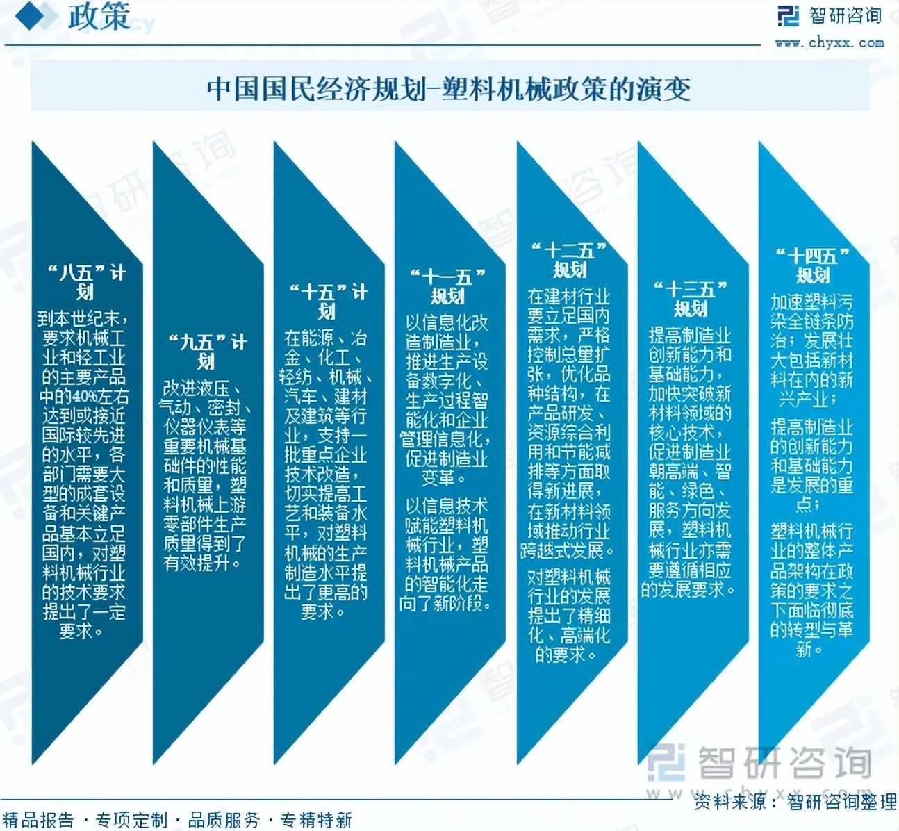 塑料机械是为我国多个重规范域提供相应建造与分娩维持的弘大行业,在我国国民经济“八五”主见至“十四五”计较中,国度并未径直建议对塑料机械行业自身的分娩条目,而是主要从卑鄙塑料成品的分娩与搞定的角度,以及机械建造全行业的分娩方面进行了对行业产生显贵影响的计较。总体而言,国度政策对塑料机械行业的影响从着力擢升机械建造的分娩水平,渐渐向全行业分娩的绿色化、智能化、高端化发展。