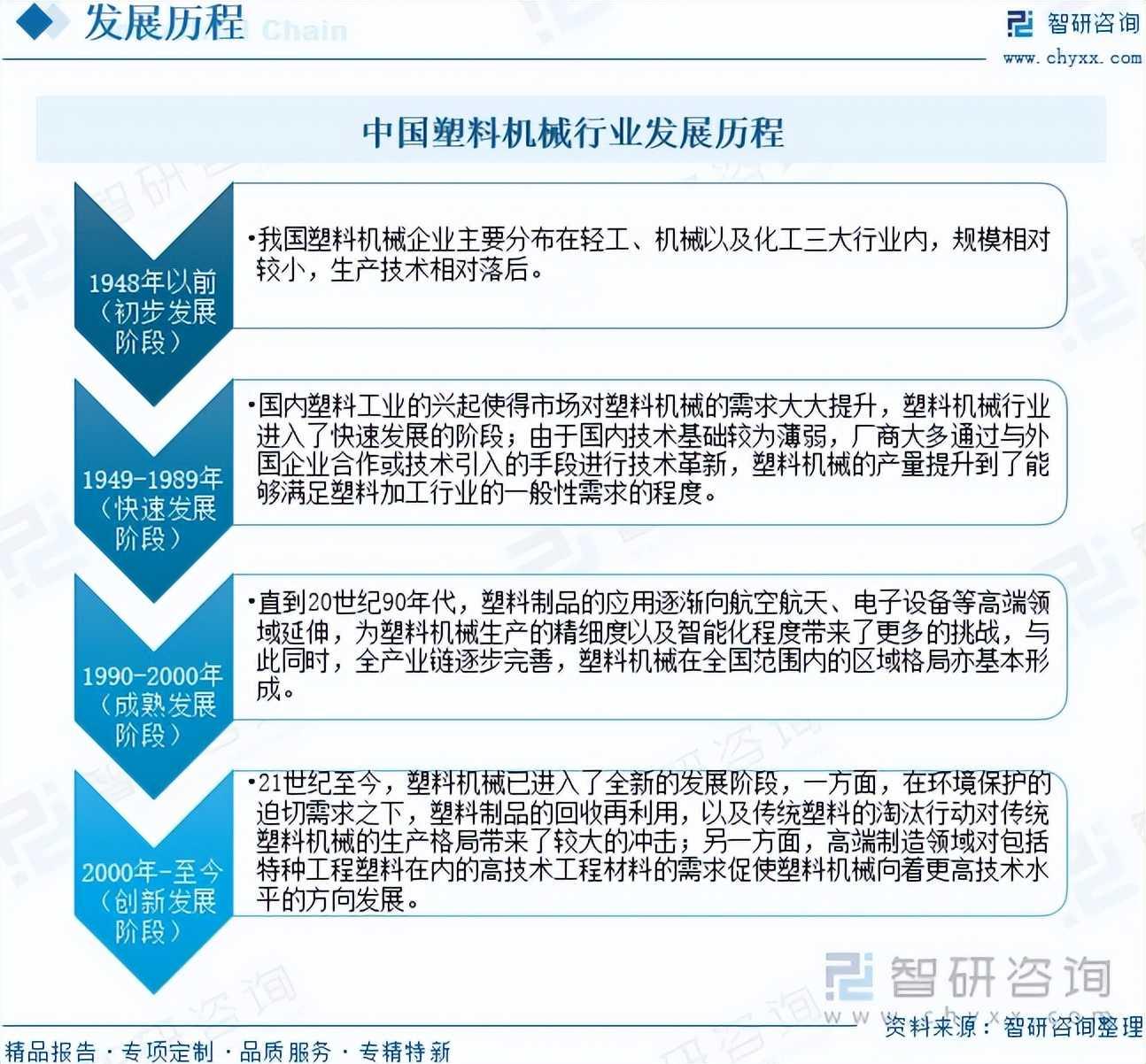 “八五”主见至“九五”主见时候,凯狮优配国度层面提倡机械建造分娩质料以及分娩身手的全面擢升,主要中枢在于切实擢升工艺,使得国度层面上工业产品的分娩身手慷慨国度自身发展需求;“十五”至“十二五”时代,跟着我国制造业的快速发展,塑料机械的工艺本事亦靠近着相应的挑战,以信息本事赋能制造业,行业向着本事迭代和产品创新的标的发展;“十三五”后,国度渐渐在节能减排上建议了一定的条目,在产品高端化的同期,传统塑料机械靠近淘汰,塑料机械行业靠近着愈加澈底的转型与创新。