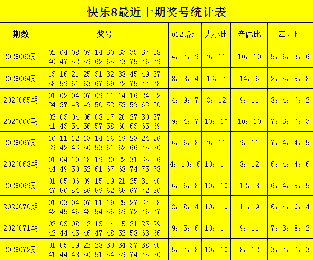 福彩自得8第2026072期开奖记忆:01 05 19 22 28 30 34 37 38 40 41 44 48 50 51 54 59 74 75 80,其中奖号012路比为5:7:8,和值为830,跨度为79,奇偶比为8:12。