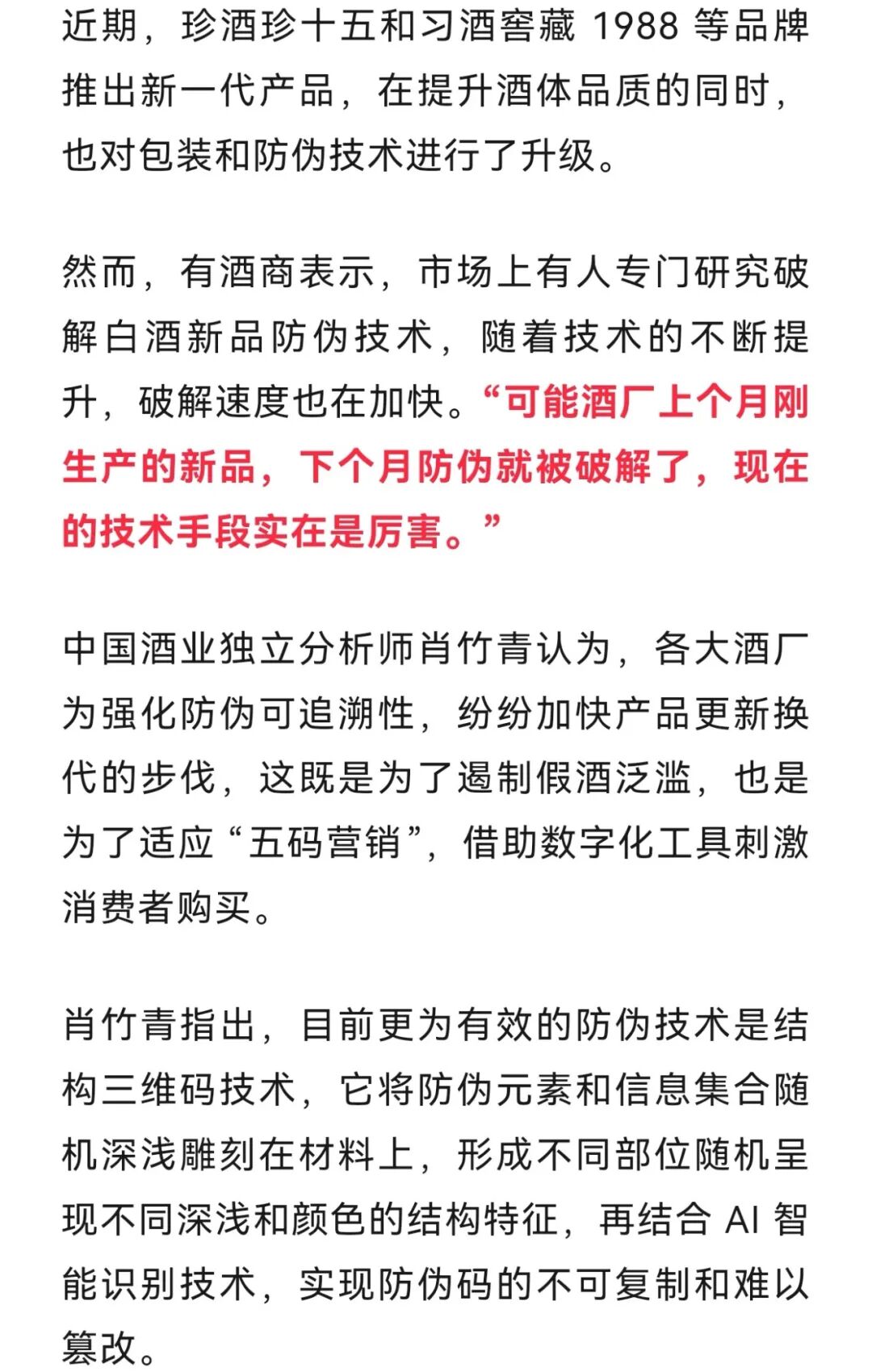 客岁下半年,五粮液、剑南春、稻花香等酒企纷纷开展打假动作,通过更新产物包装、擢升防伪技巧以及公布官方授权电商店铺名单等举措,全力保险花消者权柄。